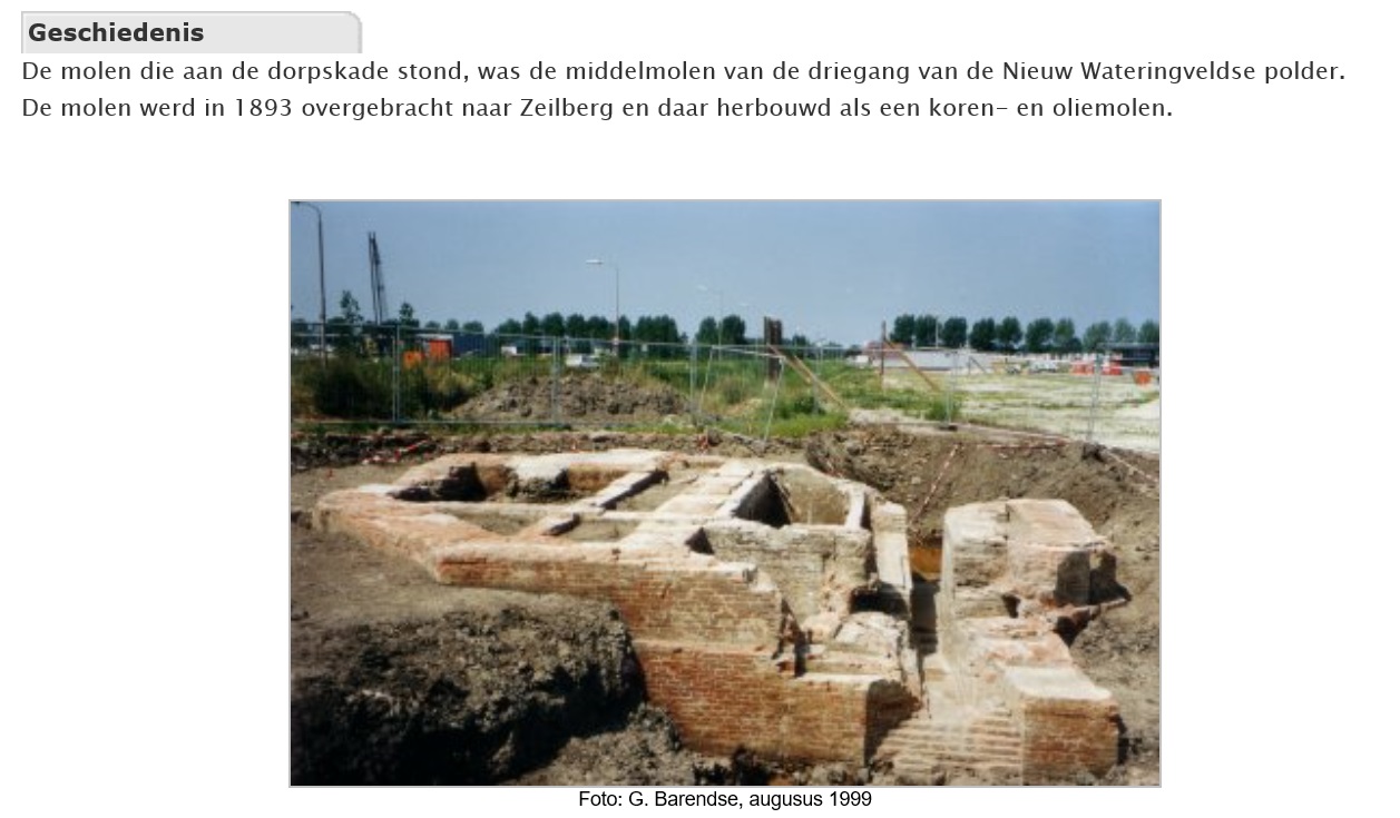 In een archiefstuk uit 1326 lezen we dat er sprake is van een “molle opden mollecamp” in Wateringen. Dat was een veel kleiner exemplaar dan de huidige molen. Een type als de standerdmolen zoals we die toen veel aantroffen. De oudste nog aanwezige standerdmolens in Nederland zijn o.a. Windlust in Nistelrode uit 1532. Ook in Monster stond vroeger een standerdmolen. Daar werd in 1311 de molen in Monsterambacht geschonken door Heer Diederic (Dirc) van der Wale. Dirc kwam in 1317 te overlijden, hij was gehuwd met Vrouwe Maria uten Goye, weduwe van Heer Jan van der Wateringhe. In het eerste huwelijk was Maria derhalve getrouwd met haar volle neef, Jan van de Wateringhe, deze was een zoon van heer Gerard van de Wateringhe en van Machtelt van Teylinghen, een tante van Maria. Haar eigen moeder heette Margaretha van Teylinghen en was mogelijk zelfs de tweelingzus van Machtelt (zie ook de beschrijving van de Molen “De Vier Winden” ). Het geslacht van de Wateringhe stierf in de mannelijke lijn uit met het overlijden van Aalbrecht in 1387. Zijn dochter Willeme, huwde ridder Gerard van Egmond, Baljuw van Kennemerland en Capiteijn van Stavoren. Na deze Gerard was zijn zoon Jan van Egmond nog heer van het slot in Wateringen, dat daar tot diep in de 15e eeuw heeft gestaan. Uit zijn huwelijk met Jenne Bastaard van Arkel wordt een dochter geboren, Willeme van Egmond van de Wateringhe, die weer in het huwelijk trad met Willem III van Naeltwijck, Ridder en Erfmaarschalk van Holland, Raad en Rentmeestergeneraal van Holland. Op deze wijze werden de Heren van Naeltwijck ook Heer van Wateringhe. Zij bewoonden het toenmalige Slot te Honselersdijk. Hun oudste kind was Heer Hendrik IV van Naeltwijck, evenals zijn vader Ridder, enz. enz. en gehuwd met Machteld van Raaphorst. Het paar bleef kinderloos. Margaretha van der Marck erfde in 1544 o.a. de heerlijkheid van Wateringhe van haar broer.